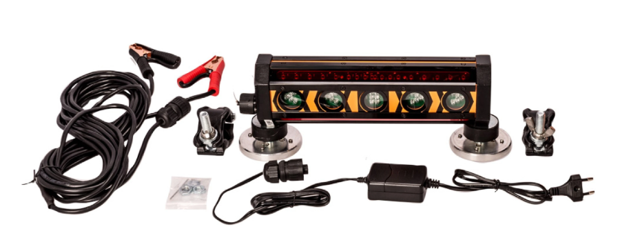 - Montaż do maszyny budowlanej przy pomocy silnych magnesów neodymowych lub przy pomocy zamykanych i zakręcanych obejm