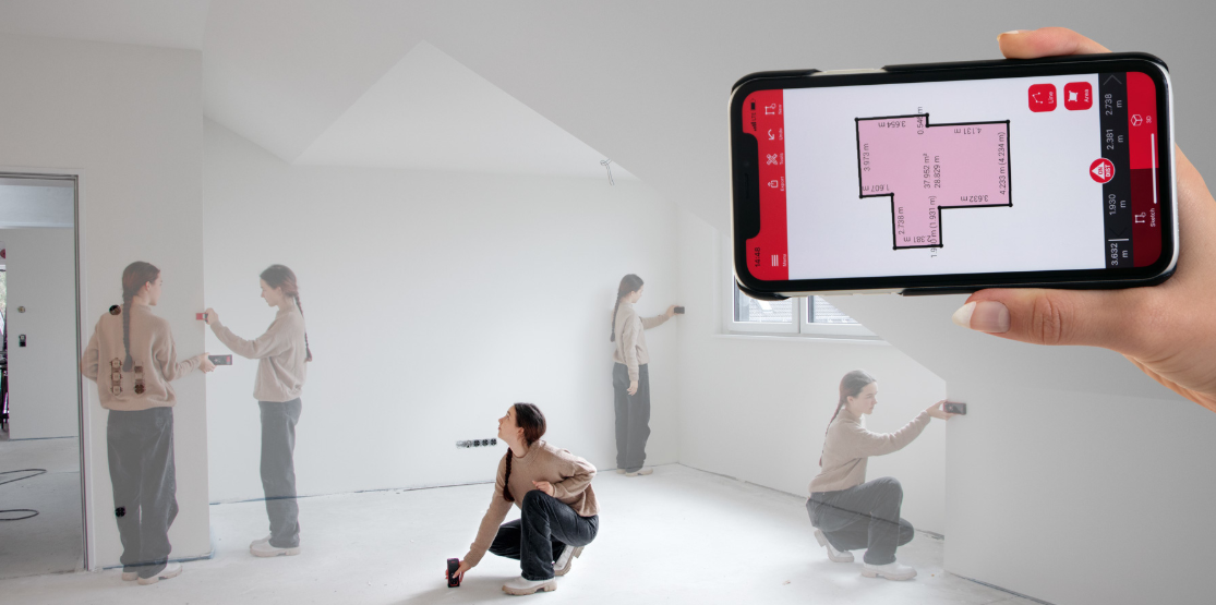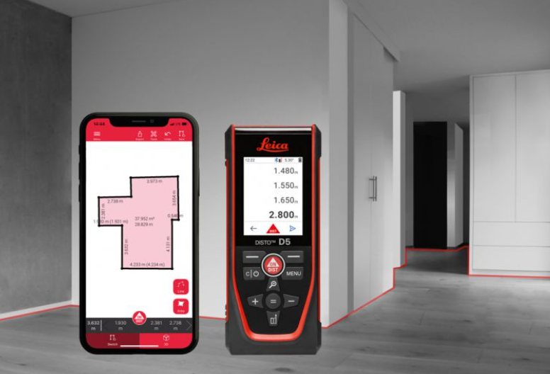 Wyniki pomiarów mogą być transmitowane bezprzewodowo przez Bluetooth do najnowszej aplikacji Leica Disto Plan, którą można pobrać za darmo ze sklepu Apple Store lub Google Play. Urządzeniem Disto D5 można więc szybko wykonywać cyfrowe szkice i rzuty mierzonych pomieszczeń z wykorzystaniem funkcji Smart Room (dodatkowo płatna opcja aplikacji Disto Plan). Dalmierz wyposażono w unikalną funkcję bezdotykowego wywołania pomiaru za pomocą gestu przed obiektywem, która eliminuje konieczność dotykania klawiszy i w ten sposób podnosi dokładność wyników przy dużych dystansach.