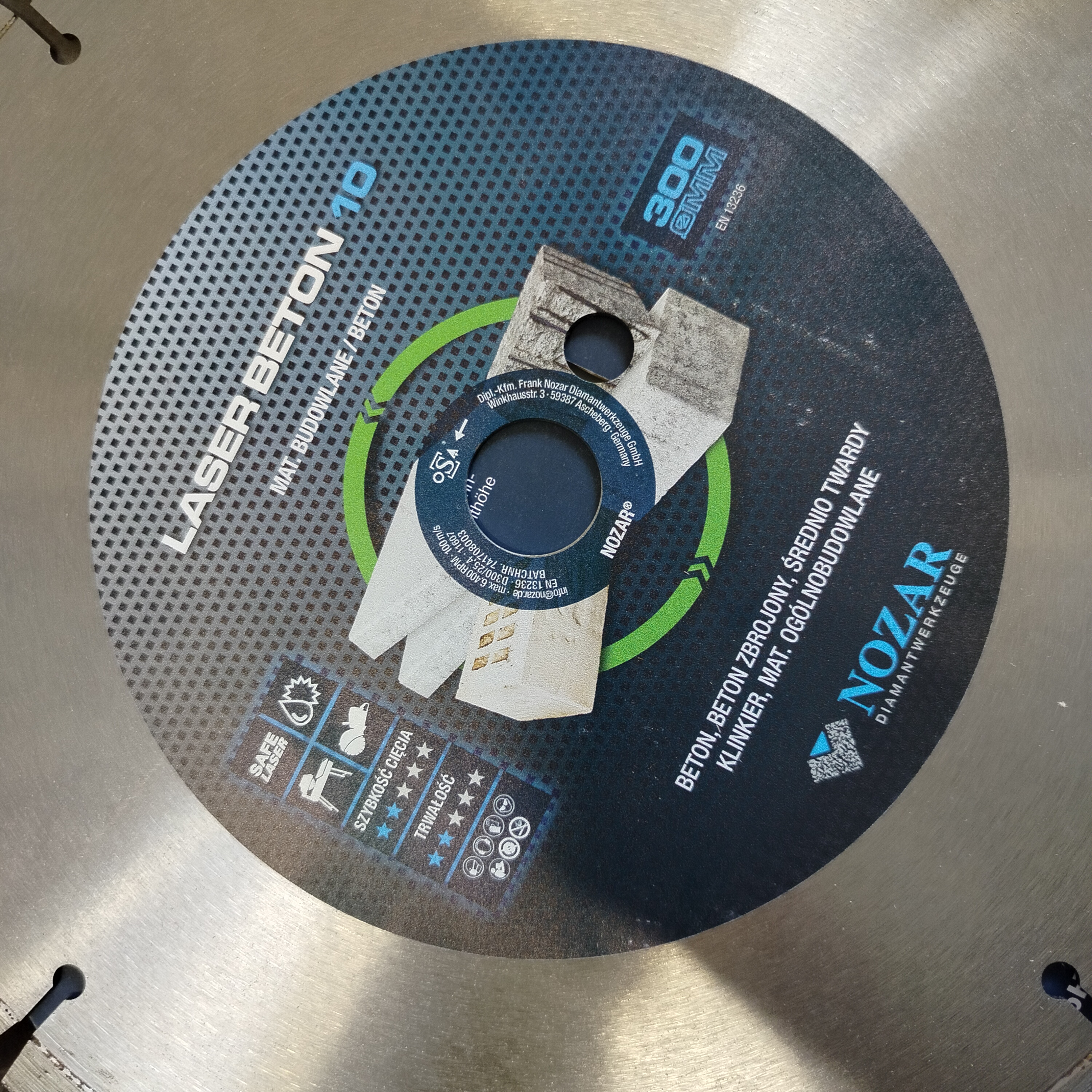 Wprowadzenie » NARZĘDZIA BRUKARSKIE » Tarcze diamentowe » Tarcza diamentowa 300 mm Nozar Laser Beton 10