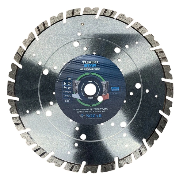 Tarcza diamentowa Nozar Turbo Star 350mm dzięki swojej wszechstronności doskonale nadaje się do cięcia materiałów takich jak beton, beton zbrojony, klinkier oraz inne materiały budowlane. Wysoka jakość wykonania gwarantuje niezawodność i maksymalną wydajność pracy.Tarcza wyróżnia się wyjątkową trwałością oraz precyzyjnym wykonaniem. Parametry techniczne zapewniają optymalne dopasowanie do wielu maszyn tnących. Innowacyjny design typu Turbo pozwala na szybkie, płynne i precyzyjne cięcie, zwiększając efektywność pracy i redukując zużycie narzędzia, co czyni ją idealnym wyborem na każdą budowę.