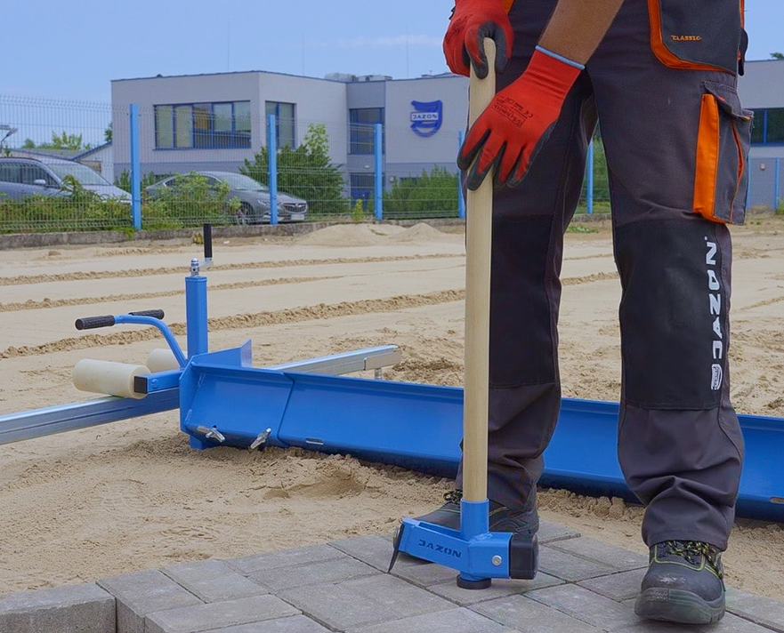Ustawiak brukarski UB 3w1 marki Jazon łączy w sobie funkcje młotka, wyważaka i ubijaka. Preznaczony jeest do pozycjonowania, wyważania i dobijania kostek i krawężników.